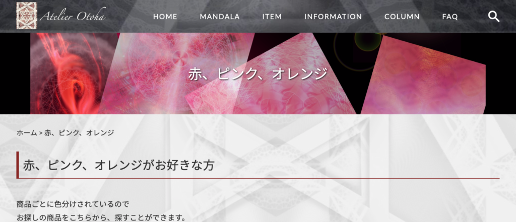 6.商品ページの案内にリンクが飛びます。赤、ピンク、オレンジページが表示されました。
